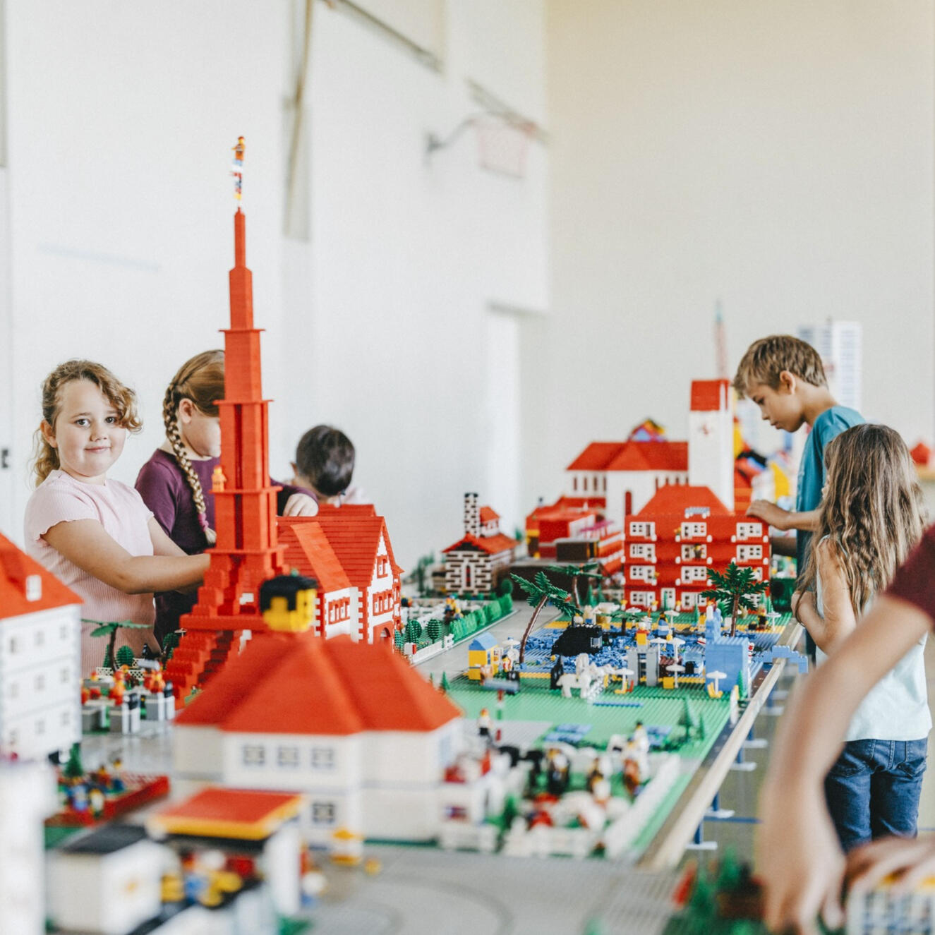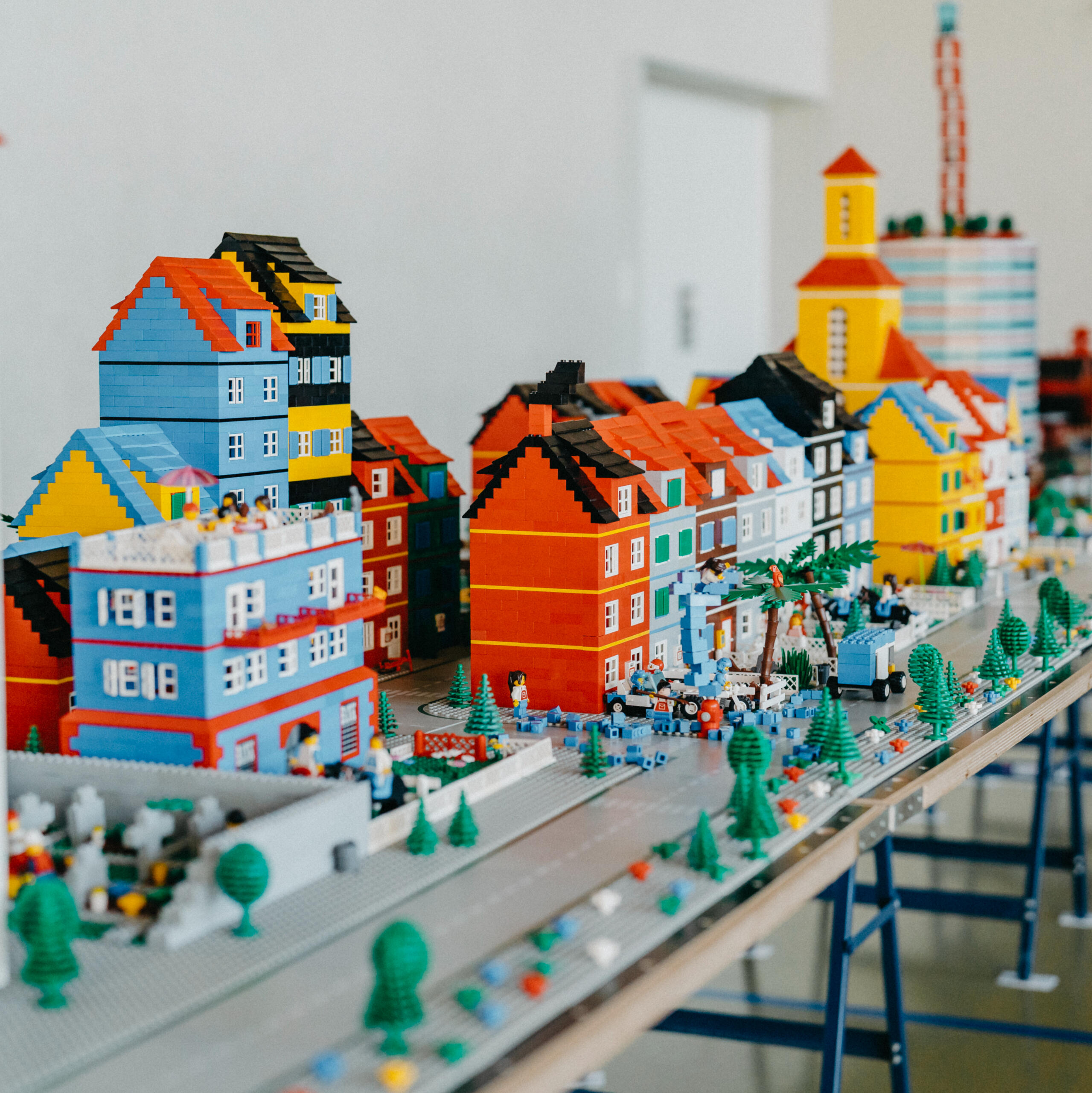 Die LEGO Stadt besteht aus tausenden von LEGO Steinen, die unter fachkundiger Anleitung zu einer bis zu 16 Meter langen Stadt mit Schloss, Hochhäusern, Kirche, Bahnhof, Fussballstadion und vielem mehr zusammengebaut wird.